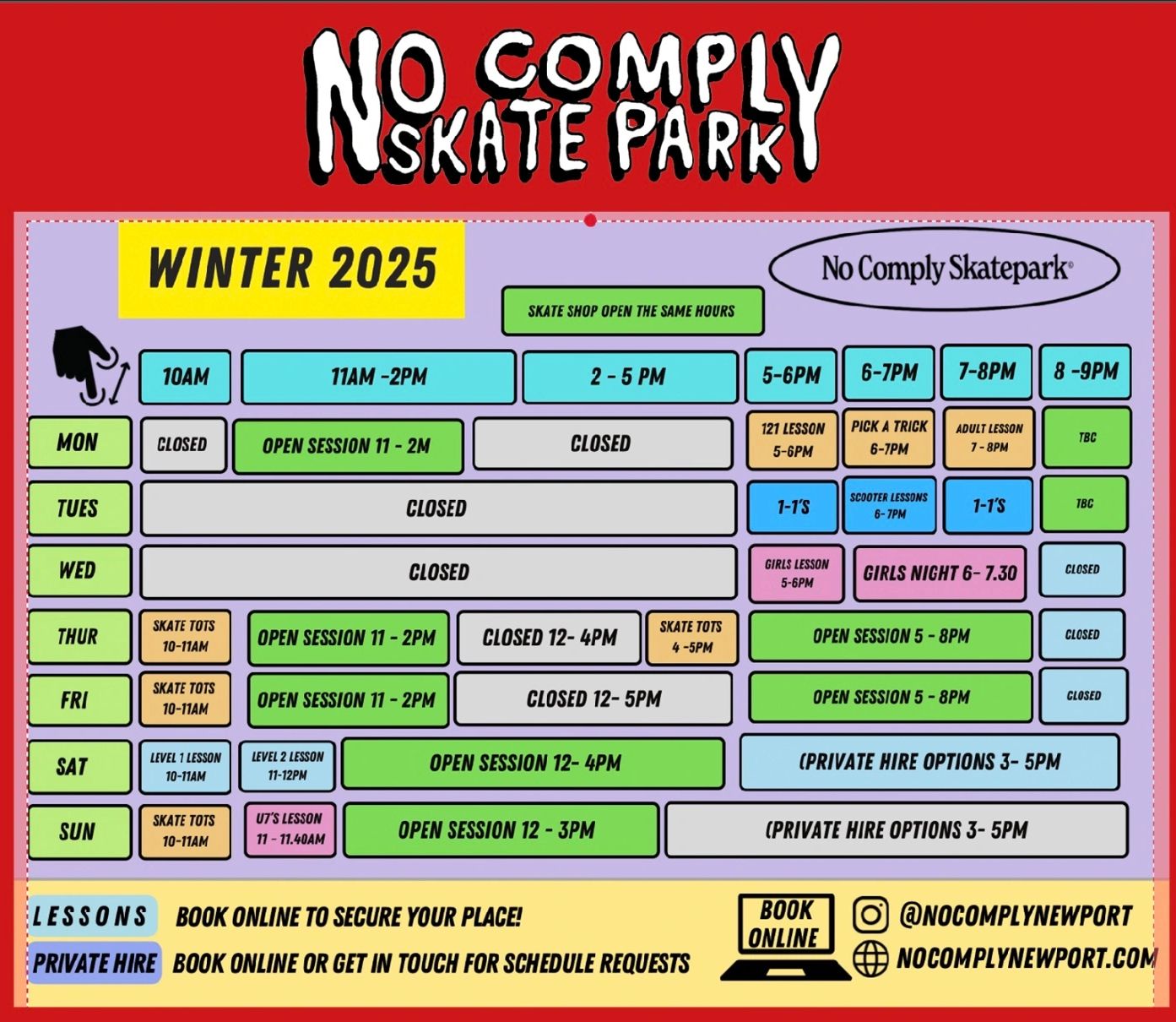 Our timetable changes often so make sure you visit this page regularly or check our social media. To book a session or a lesson click the button below.